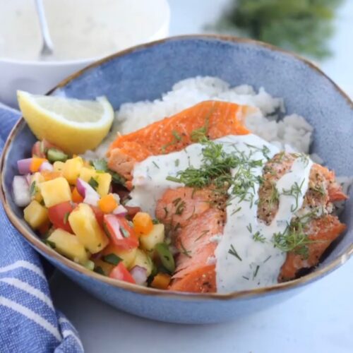 May 26, 2023 Wild Salmon with Pineapple Salsa and Lemon Dill Tartar Sauce By Ashley Wood | Ashley, Dinner