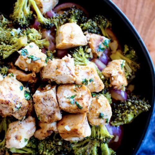 Sheet Pan Balsamic Basil Chicken Cauliflower Rice Bowl